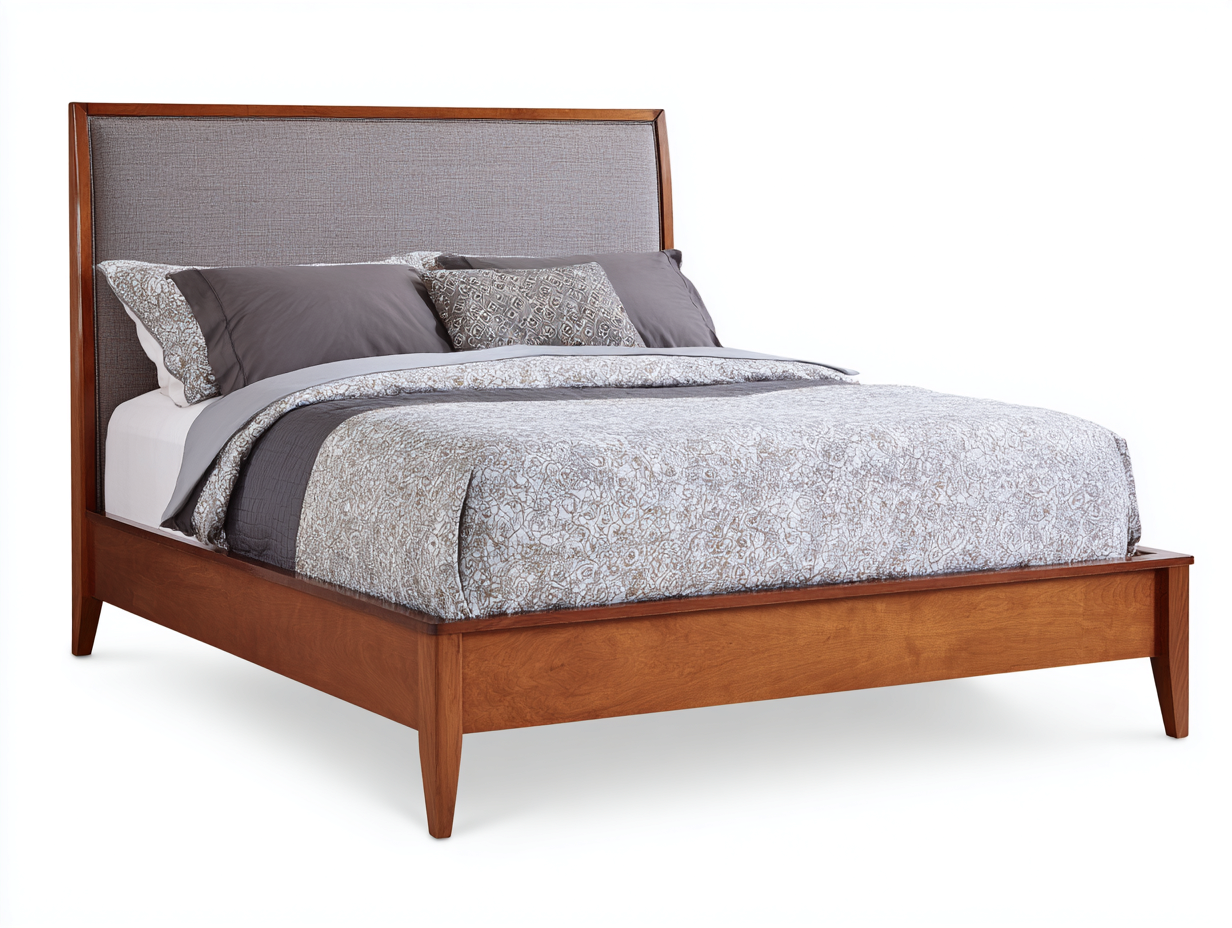 Lit double en bois massif avec tête de lit rembourrée - couchage 160x200 cm - 215x170x105 cm - bois brun et gris - design moderne pour chambre