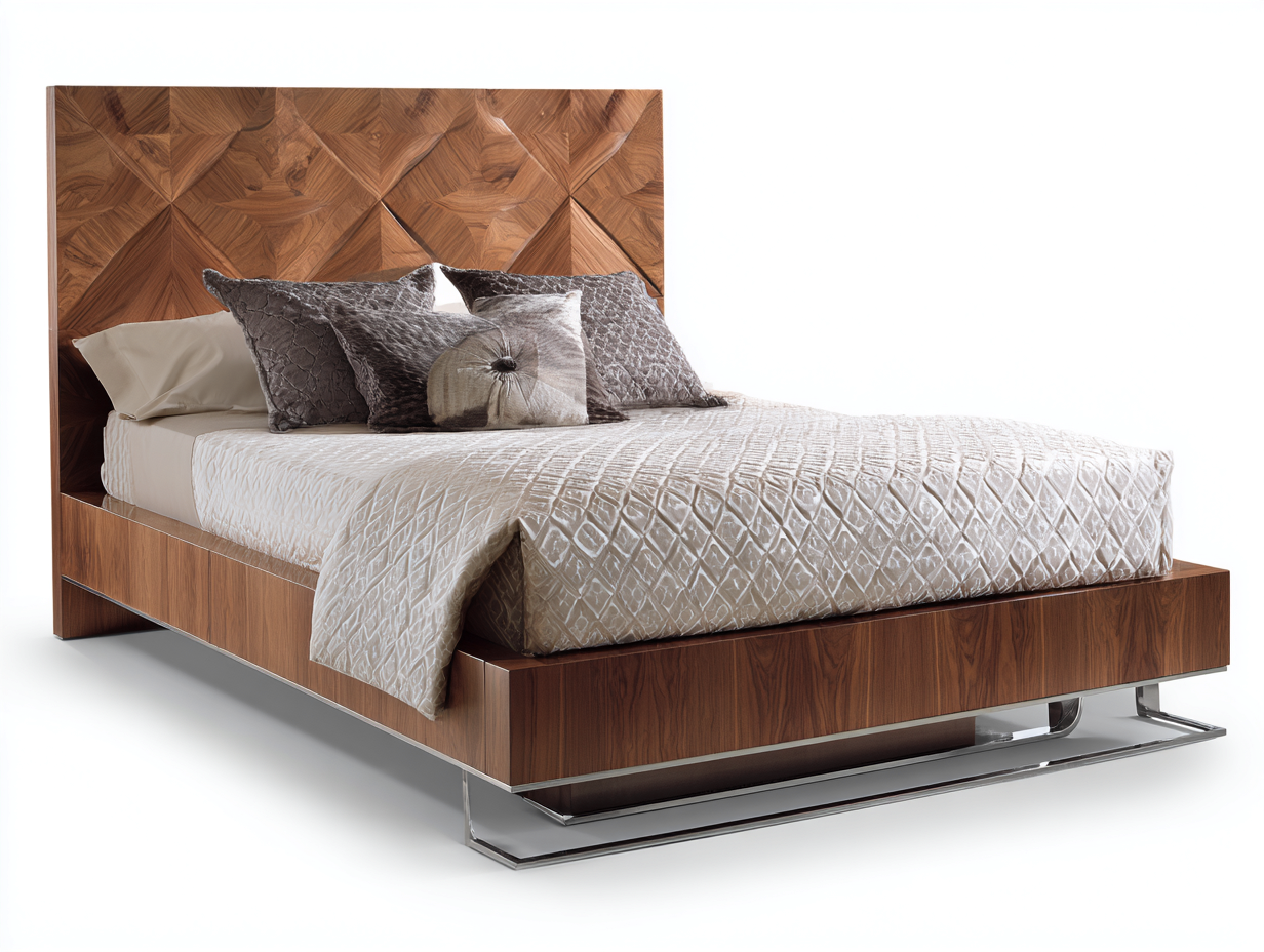 Lit double en bois avec tête de lit décorative - couchage 160x200 cm - 215x175x105 cm - bois foncé - design contemporain pour chambre