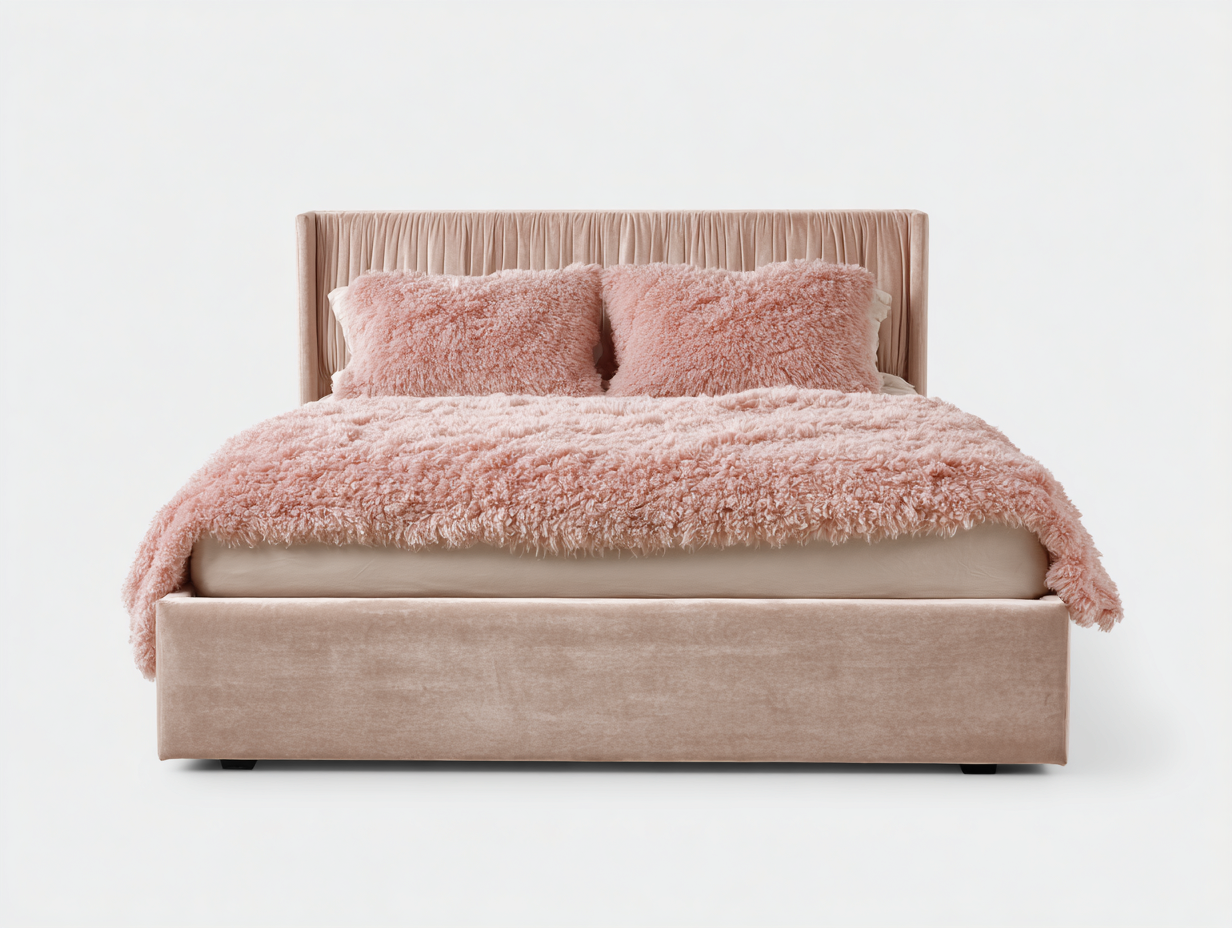 Lit double rembourré en velours - couchage 160x200 cm - 210x165x105 cm - beige rosé - design moderne pour chambre
