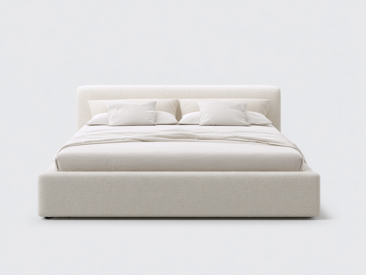 Lit double rembourré en tissu bouclé - couchage 160x200 cm - 205x170x95 cm - blanc cassé - design minimaliste pour chambre