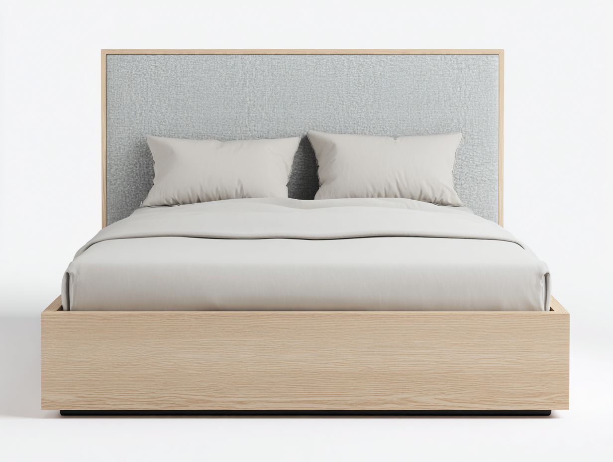 Ce lit en bois au design moderne apporte une touche naturelle et élégante à la chambre. Sa tête de lit rembourrée améliore le confort et contribue à une ambiance apaisante et contemporaine.
